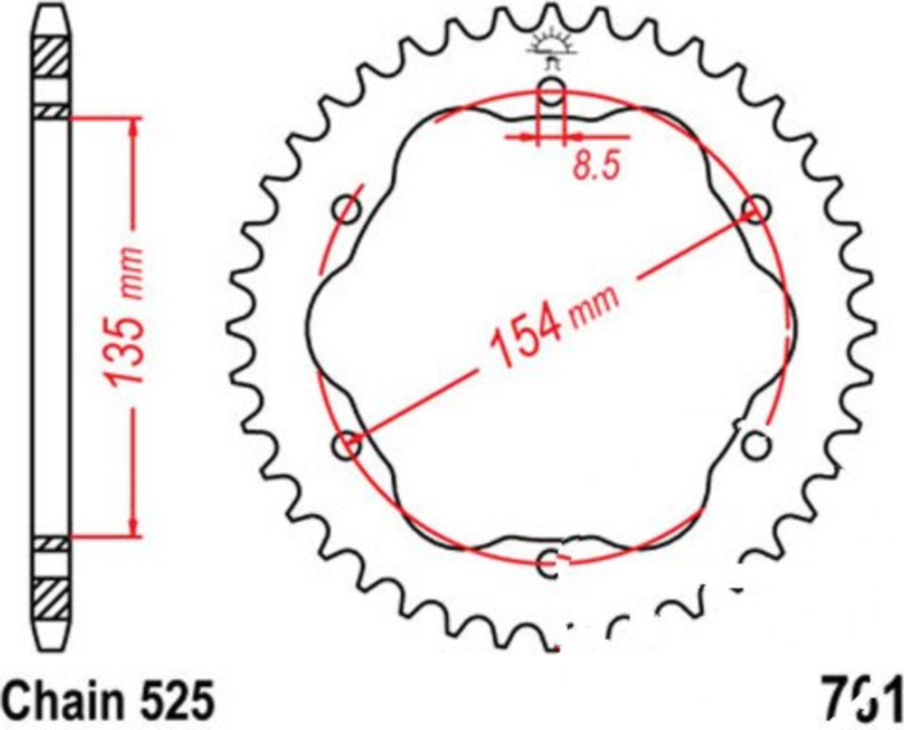 Product: Rear sprocket 45 tooth pitch 525 JTR75245