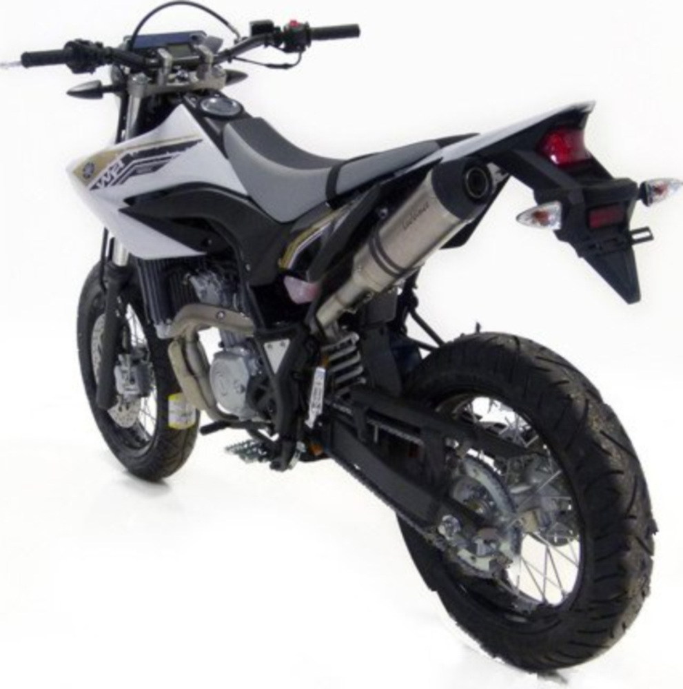 Die hintere Auslassklappe besteht aus einem extrem widerstandsfähigem Technopolymer, welches leicht, schlagfest und hitzebeständig ist. Die Halteschelle besteht komplett aus Carbon und die Anschlüsse sind wie der Auspuff selbst aus Edelstahl gefertigt. Die Form des Krümmers und des Schalldämpfers sind spezifisch auf jedes Modell abgestimmt und verbessern somit das Drehmoment und die Höchstleistung.
