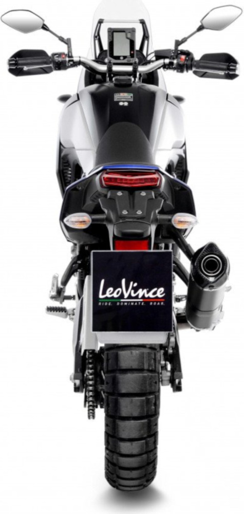 Die hintere Auslassklappe besteht aus einem extrem widerstandsfähigem Technopolymer, welches leicht, schlagfest und hitzebeständig ist. Die Halteschelle besteht komplett aus Carbon und die Anschlüsse sind wie der Auspuff selbst aus Edelstahl gefertigt. Die Form des Krümmers und des Schalldämpfers sind spezifisch auf jedes Modell abgestimmt und verbessern somit das Drehmoment und die Höchstleistung.