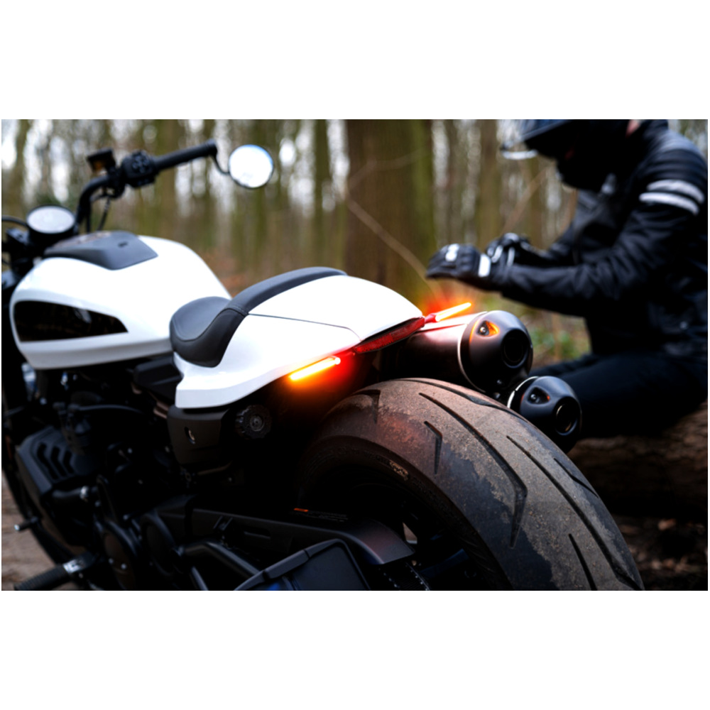 Die innovative Blinker-Brems-Rücklicht Kombination im außergewöhnlichen Micro Rhombus Gehäuse ermöglicht es, bei der Individualisierung Ihres Hecks einen völlig neuen Weg zu gehen. Die charakteristisch strahlenden Doppelrückleuchten der Micro Rhombus DF setzen neue Zeichen. Auf Basis der bewährten High Power LED Technologie** befinden sich im kompakten Gehäuse des Micro Rhombus DF sowohl Blinker, als auch Brems- und Rücklicht. Somit bieten sie eine optimale Möglichkeit zur Gewichtsreduzierung Ihres Motorrades. Geeignet für alle Motorradtypen*.