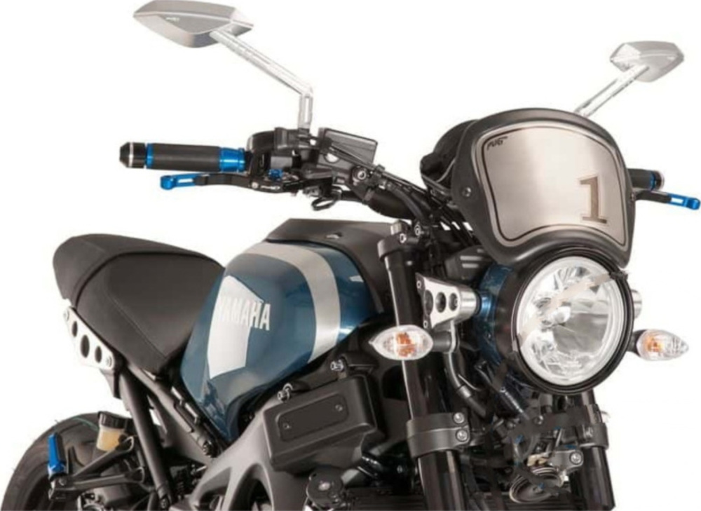 Diese Startnummerntafel im Rennsportlook unterstreicht die klassische Linienführung vom Motorrad.