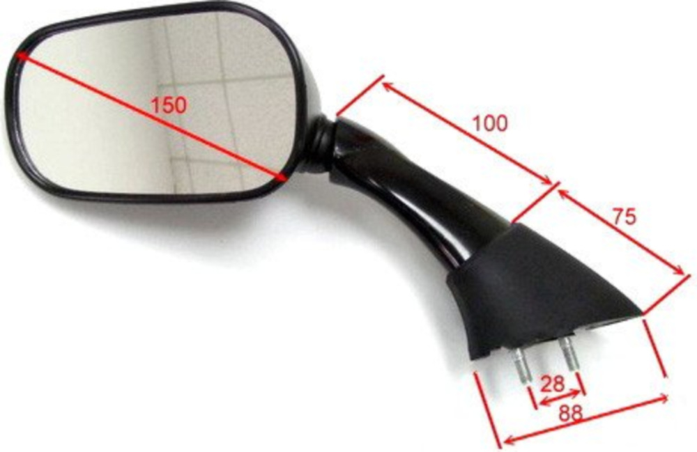 Bei Spiegeln ohne Prüfzeichen muss die Spiegelfläche bei einer Erstzulassung nach dem 1. Januar 1990 laut StVZO mindestens 60 cm2 betragen. Bei einem runden Spiegel zum Beispiel entspricht das einem Durchmesser von etwa 87 mm. Liegt die Erstzulassung nach dem 1. Januar 1998, sind 68 cm2 vorgeschrieben.
