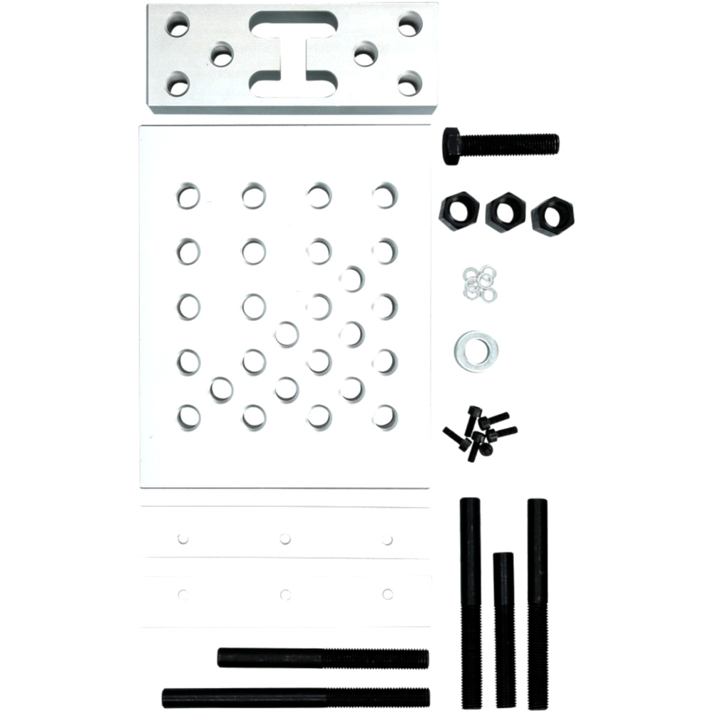 Die Anzahl und Anordnung an Gewinde ermöglichen die Anpassung an nahezu jede Bauteiloberfläche.für Montage- und DemontagearbeitenAluminium Auflageplatte 24,5 cm x 19,5 cmAluminium Schwenkelement 70 mm x 19,5 cmuniversale 45-Punkt Auflagegewährleistet kipp- und spielfreie Anwendunghöhenverstellbare Auflagebolzen aus hochfestem SonderstahlSchwenkelement gewährleistet einfaches Anpassen