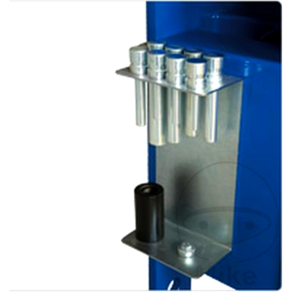 Bestehend aus Pressplatte mit 8 Dornen (Ø 10, 12, 15, 17, 20, 22, 25 und 30 mm), Adapter und Halter