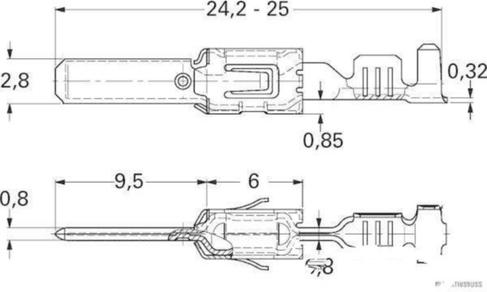 JPT FlachsteckerFür Leitungsquerschnitt 1,0 - 2,5 mm²Breite x Stärke: 2,8 x 0,8 mm