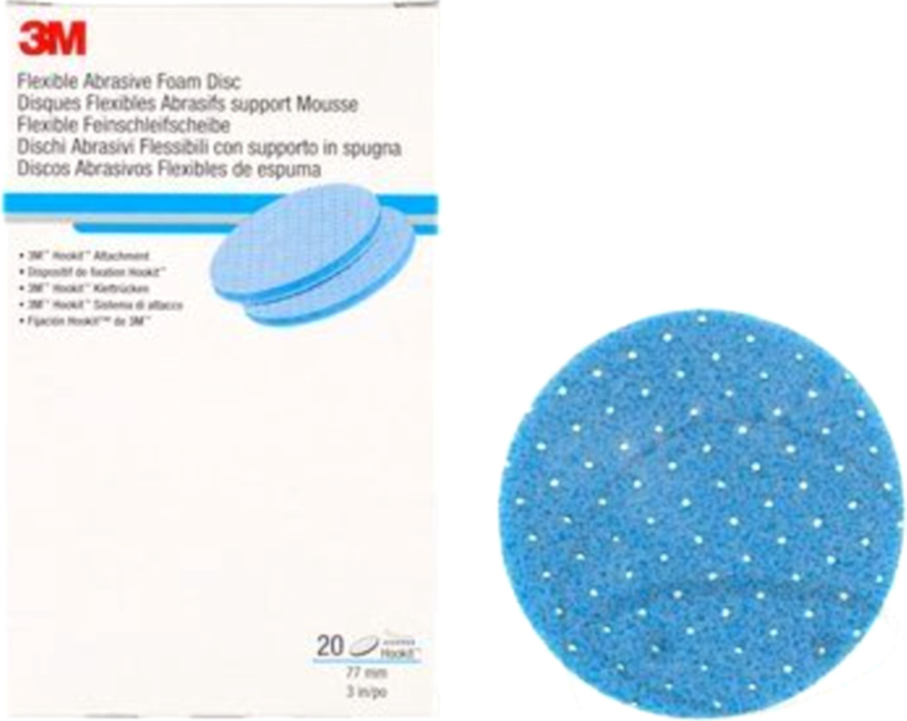 3M Hookit FeinschleifscheibeGelochte Feinschleifscheibe mit flexiblem Schaumstoffträger und 3M Hookit Klettrücken mit Antirutschbeschichtung.Für Hand- und Maschinenanwendung geeignet. Sehr leistungsstark im Trockenschliff, jedoch auch nass einsetzbar.Ideal für den Beilackierungsbereich (zur Farbtonangleichung), den Füllerfeinschliff und das Mattieren von Oberflächen.