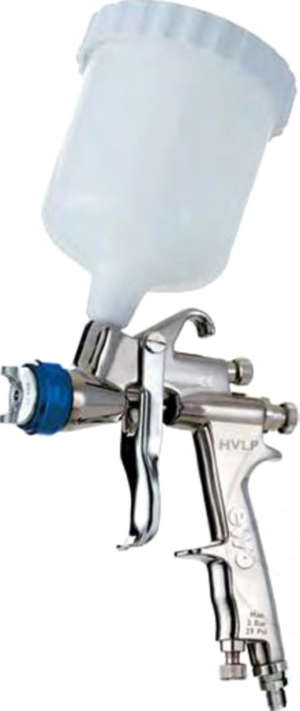 Nebelreduzierte und umweltfreundliche HVLP-Ausführung mit hoher Farbübertragungsrate (66-80%) bei gleichzeitig geringem Betriebsdruck (2,0-2,5 bar). Mit Edelstahldüsenkomponenten zur Verarbeitung von Wasserlacken. Besonders geeignet für kleinere Oberflächen, Teillackierungen an Fahrzeugen sowie vielfältige dekorative Lackierarbeiten.