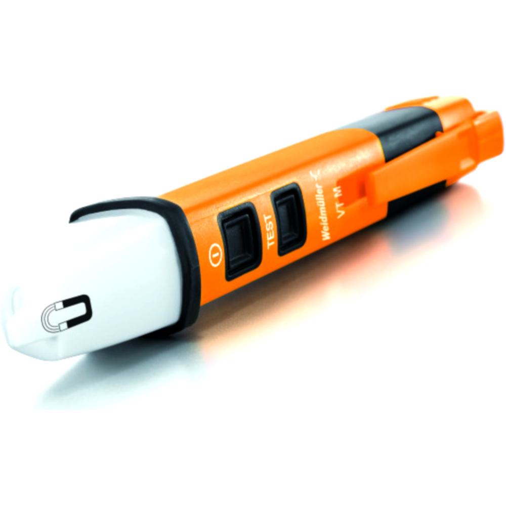 - Ein Magnetfeld wird durch rotes Aufleuchten der weißen Kunststoffspitze angezeigt