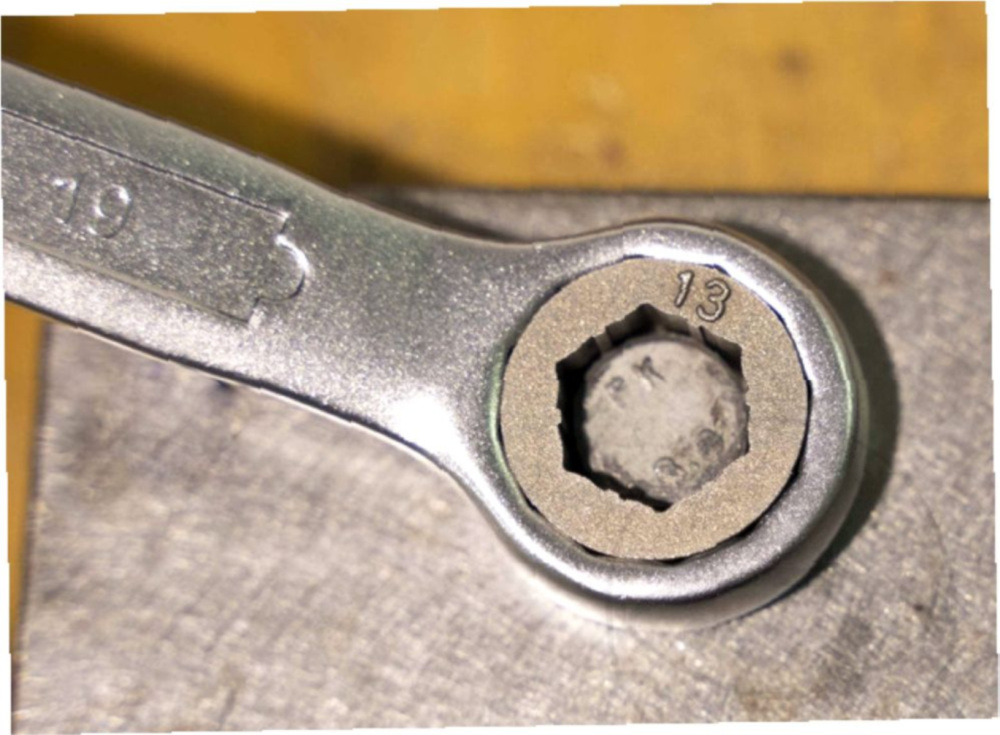 3. Drehen - Mit einem Schlüssel wird durch Linksdrehung das Teil aus der Gewindebohrung ausgeschraubt