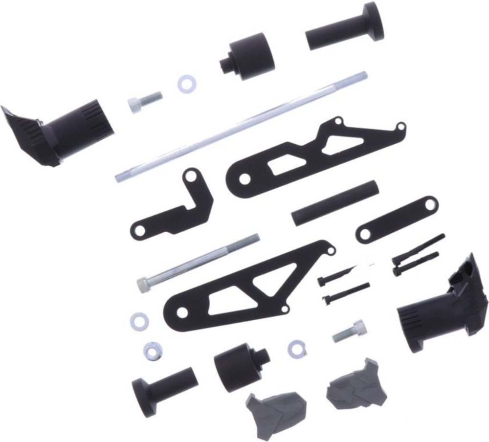 Jeder Sturzpadsatz ist individuell auf das jeweilige Motorradmodell angepasst. Die Maße sind so ausgelegt, dass die Pads erst nach den Fußrasten aufsetzen, schmaler als der Lenker sind, den Rahmen, Tank und die Verkleidungsteile am Motorrad, sowie das Fahrerknie schützen.